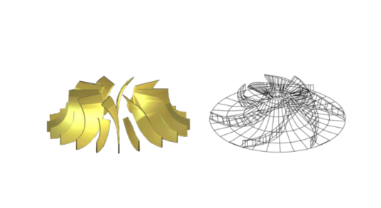 三元流動(dòng)理論就是把葉輪內(nèi)部的三元立體空間無(wú)限地分割,通過(guò)對(duì)葉輪流道內(nèi)各工作點(diǎn)的分析,建立起完整、真實(shí)的葉輪內(nèi)流體流動(dòng)的數(shù)學(xué)模型,依據(jù)三元流動(dòng)理論設(shè)計(jì)出來(lái)的葉片形狀為不規(guī)則曲面形狀,葉輪葉片的結(jié)構(gòu)可適應(yīng)流體的真實(shí)流態(tài),能夠控制葉輪內(nèi)部全部流體質(zhì)點(diǎn)的速度分布,因此,應(yīng)用三元流動(dòng)理論設(shè)計(jì)的水泵,運(yùn)行效率得以顯著提高,具有明顯的節(jié)能效果。